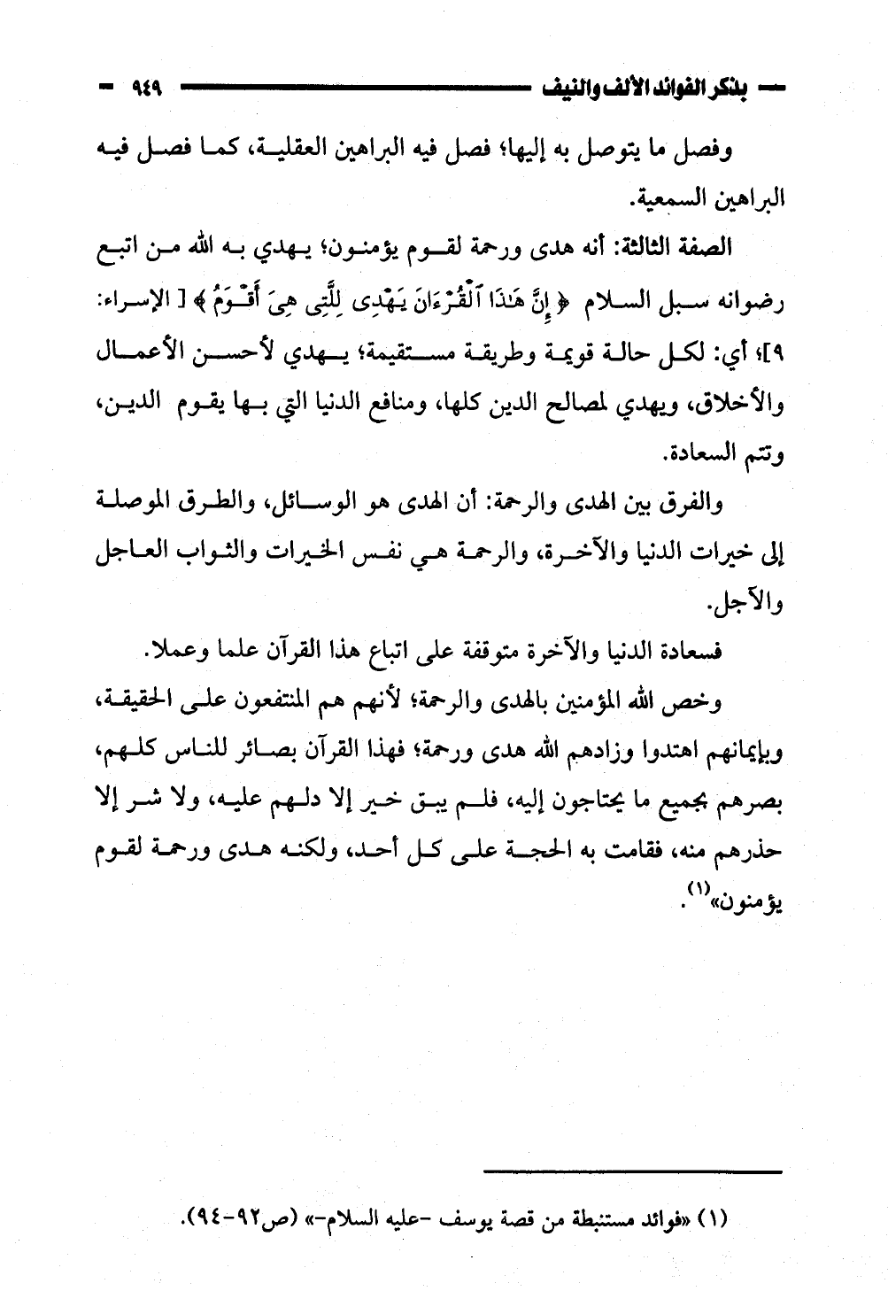 (1) "فوائد مستنبطة من قصة يوسف -عليه السلام -" (ص 92 - 94).