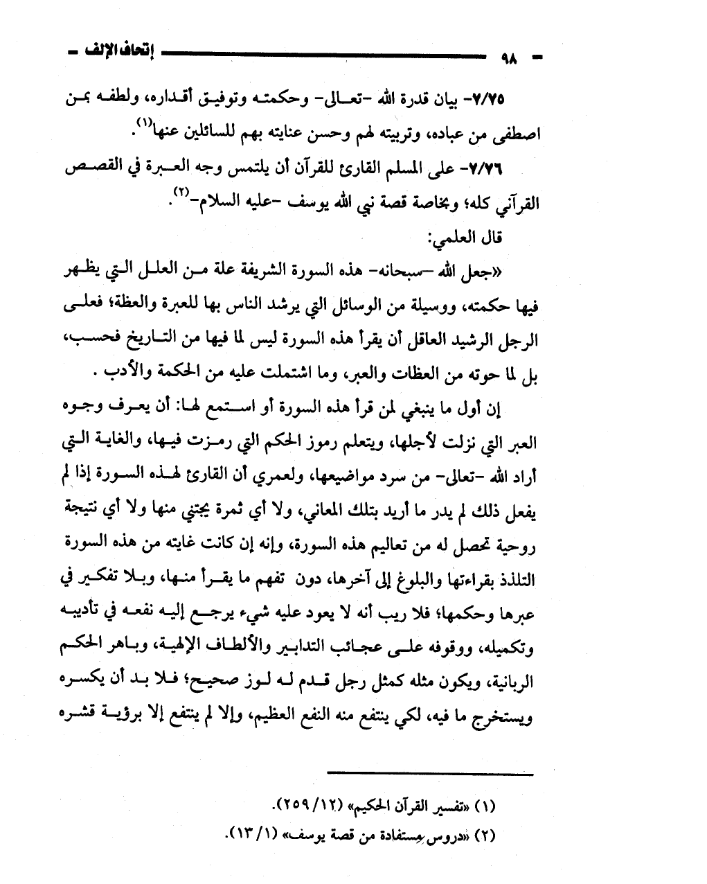كتاب إتحاف الإلف بذكر الفوائد الألف والنيف من سورة يوسف
