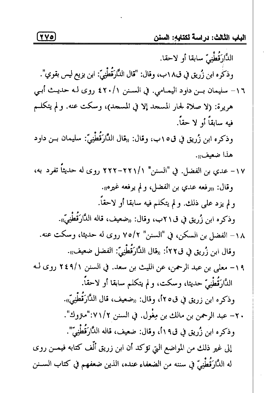 د- "من تكلم فيه الدَّارَقُطْنِيّ في كتاب السنن من الضعفاء، والمتروكين، والمجهولين":
