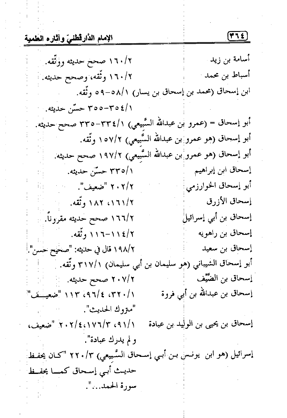 ويدخل في هذا النوع الأخير كل راوٍ من رواة حديث صححه الدَّارَقُطْنِيّ أو حسَّنه أو ضعَّفه. فإذا قال الدَّارَقُطْنِيّ في حديث: صحيح فإني أفهرس رواة ذلك الحديث، وأقول في كل واحد منهم: صحَّح حديثه، أو صحَّحه.