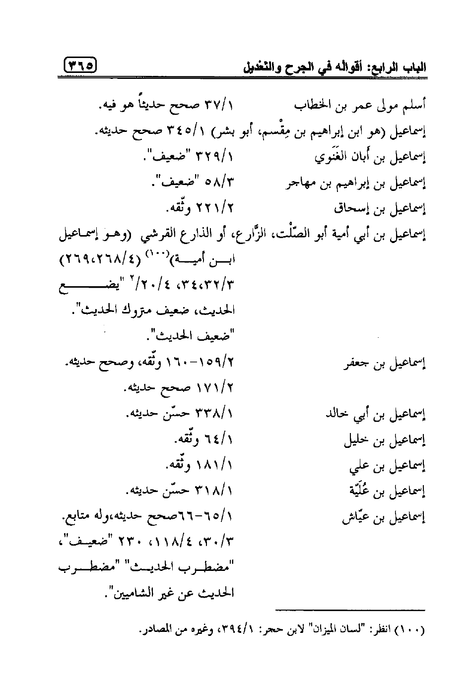 "1" المقصود بالأسماء في كل ما تقدم ما ذكر في السنن بجرح أو تعديل.