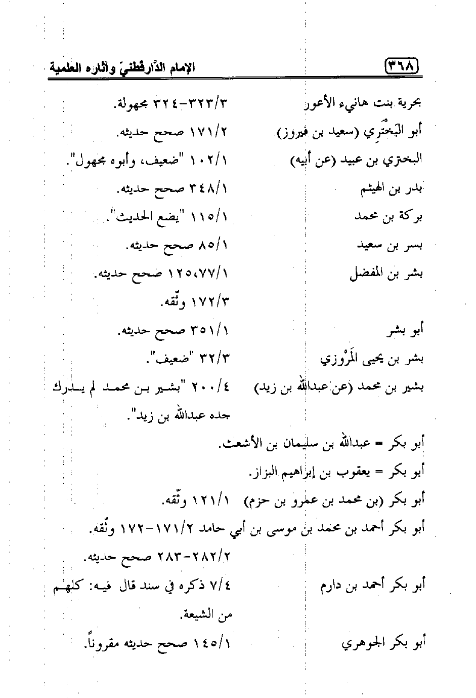 إبراهيم بن طهمان 3/81/2 "كان إبراهيم بن طهمان ثبتاً في الحديث" "قول لابن المبارك أورده الدَّارَقُطْنِيّ بسنده"، وذكر قول محمد بن يحيى فيه أنه لا يحتج بحديثه.