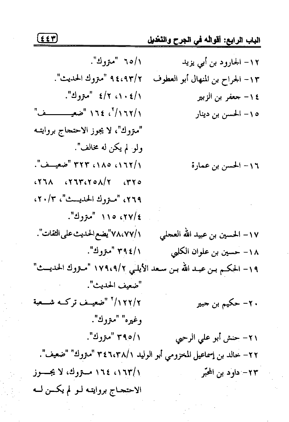 1/89 صحح حديثاً له رواه بالعنعنة.