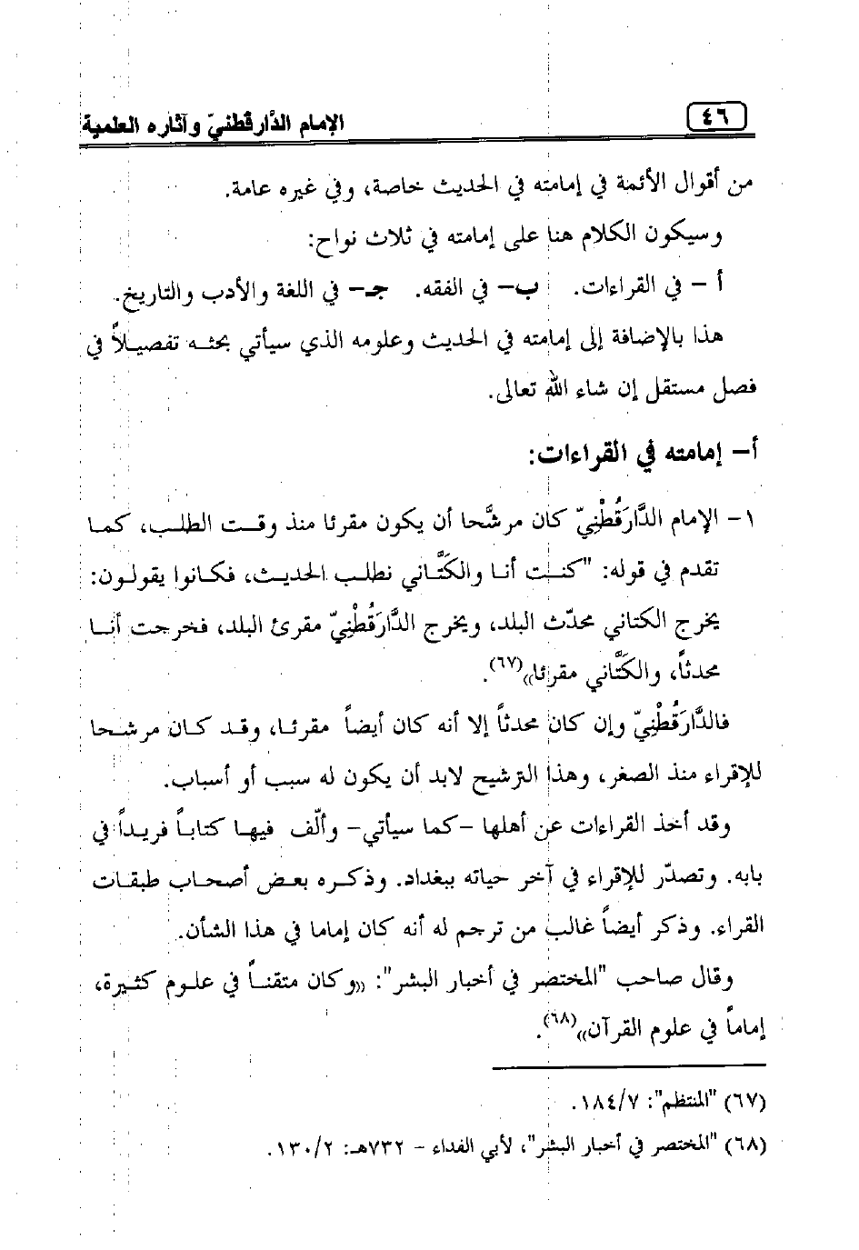 1- الإمام الدَّارَقُطْنِيّ كان مرشَّحا أن يكون مقرئا منذ وقت الطلب، كما تقدم في قوله: "كنت أنا والكَتَّاني نطلب الحديث، فكانوا يقولون: يخرج الكتاني محدّث البلد، ويخرج الدَّارَقُطْنِيّ مقرئ البلد، فخرجت أنا محدثاً، والكَتَّاني مقرئا"""1".