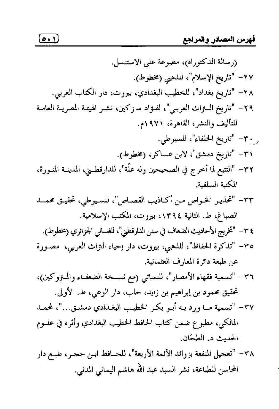 وسلك مسلكهم وحَذَا حذوهم في ذلك طوائف من الخالفين بعدهم، منهم: مالك بن أنس، وشعبة بن الحجاج، وسفيان الثوري، وحماد بن زيد، ووهيب بن خالد، وسفيان بن عيينة، وزائدة، وزهير بن معاوية.