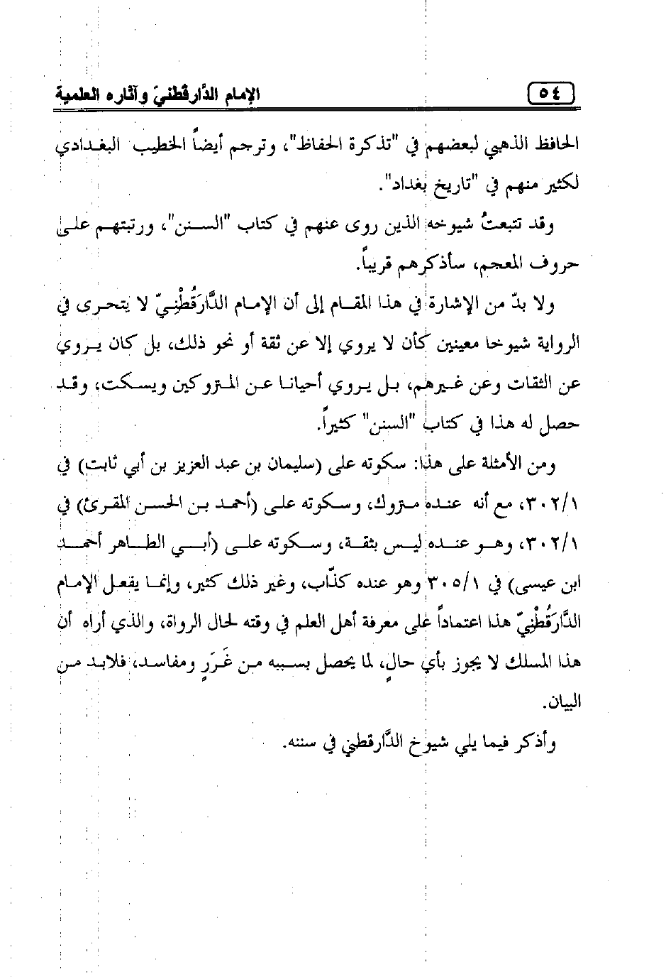 ابن عيسى" في 1/305 وهو عنده كذّاب، وغير ذلك كثير، وإنما يفعل الإمام الدَّارَقُطْنِيّ هذا اعتماداً على معرفة أهل العلم في وقته لحال الرواة، والذي أراه أن هذا المسلك لا يجوز بأي حالٍ، لما يحصل بسببه من غَرَرٍ ومفاسد، فلابد من البيان.