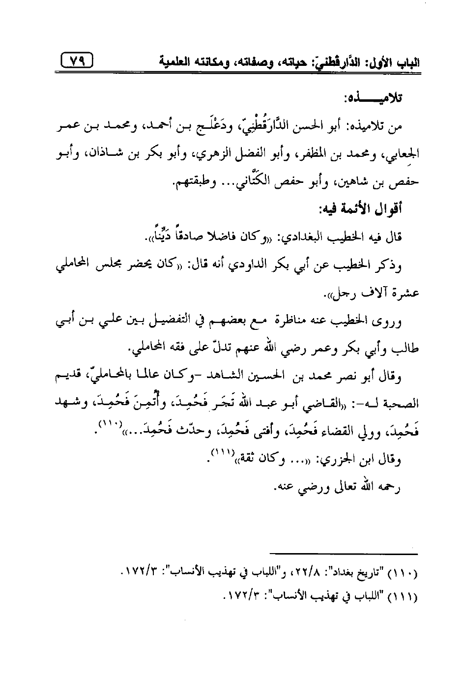 "1" "تاريخ بغداد": 8/22، و"اللباب في تهذيب الأنساب": 3/172.