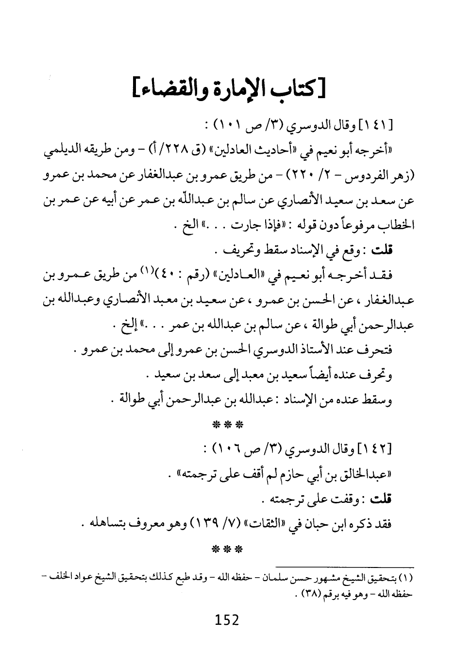 (¬1) بتحقيق الشيخ مشهور حسن سلمان -حفظه الله- وقد طبع كذلك بتحقيق الشيخ عواد الخلف -حفظه الله- وهو فيه برقم (38).