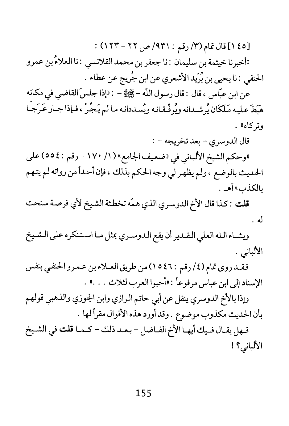 [145] قال تمام (3/ رقم: 931/ ص 22 - 123):