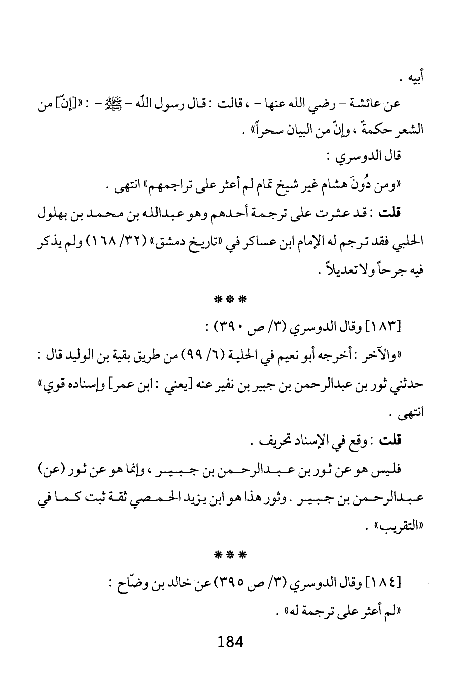 [184] وقال الدوسري (3/ ص 395) عن خالد بن وضّاح: "لم أعثر على ترجمة له".
