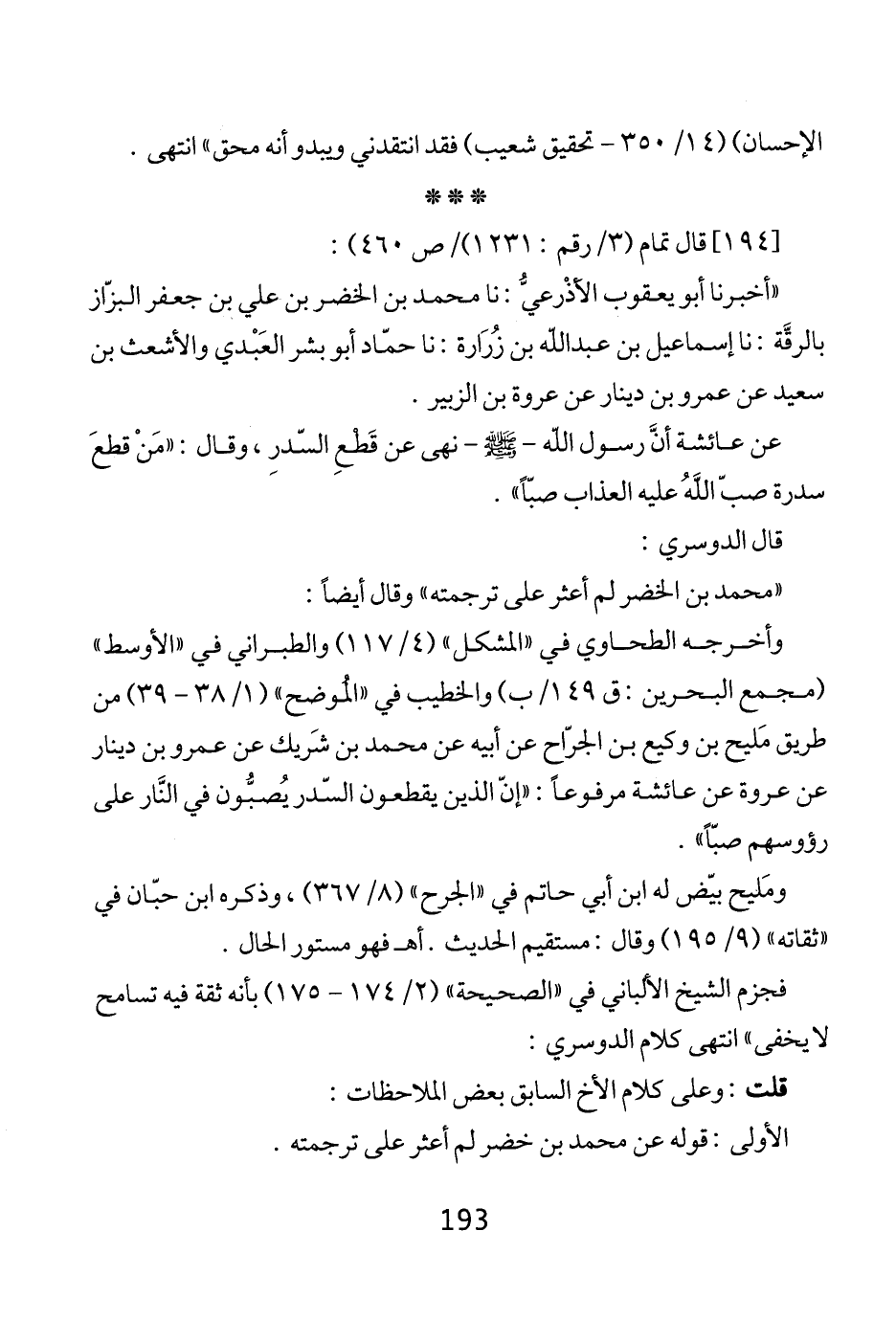 [194] قال تمام (3/ رقم: 1231) / ص 460):