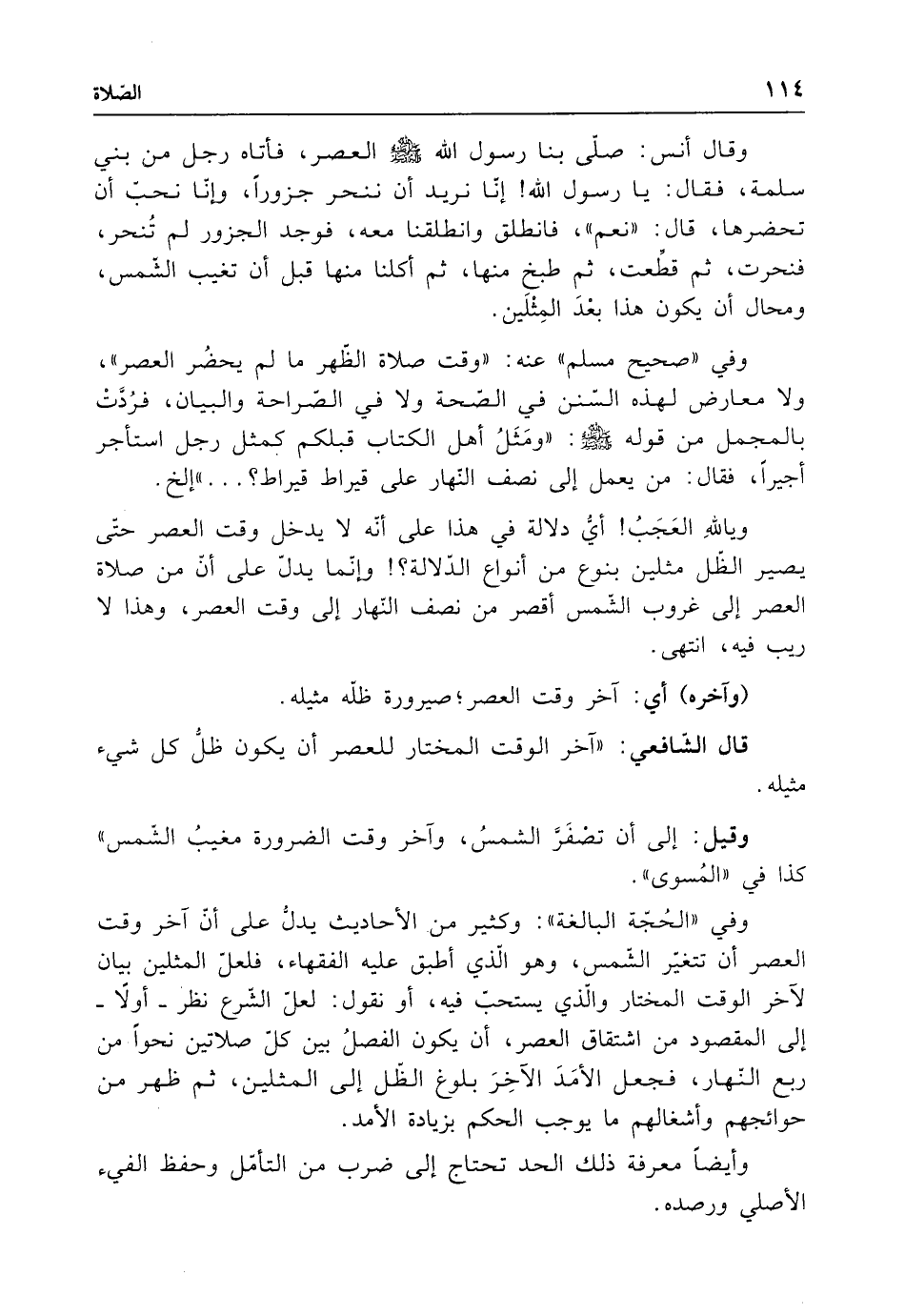 قال الشافعي: "آخر الوقت المختار للعصر أن يكون ظل كل شيء مثيله.