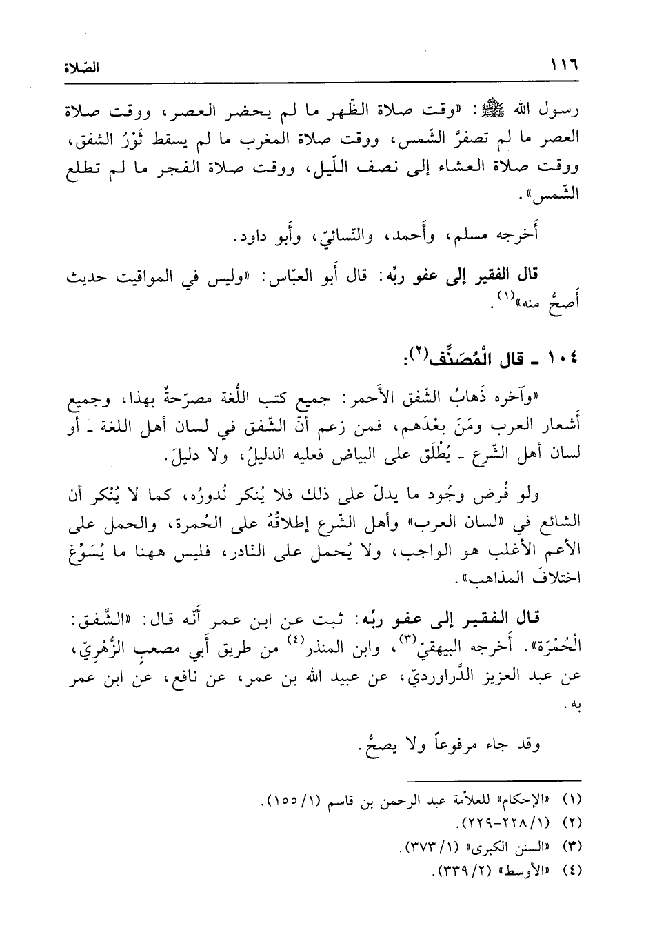 قال الفقير إلى عفو ربه: ثبت عن ابن عمر أنه قال: "الشَّفق: الْحُمْرَة". أَخرجه البيهقي (¬3)، وابن المنذر (¬4) من طريق أَبي مصعب الزهْرِي، عن عبد العزيز الدراوردي، عن عبيد الله بن عمر، عن نافع، عن ابن عمر به.