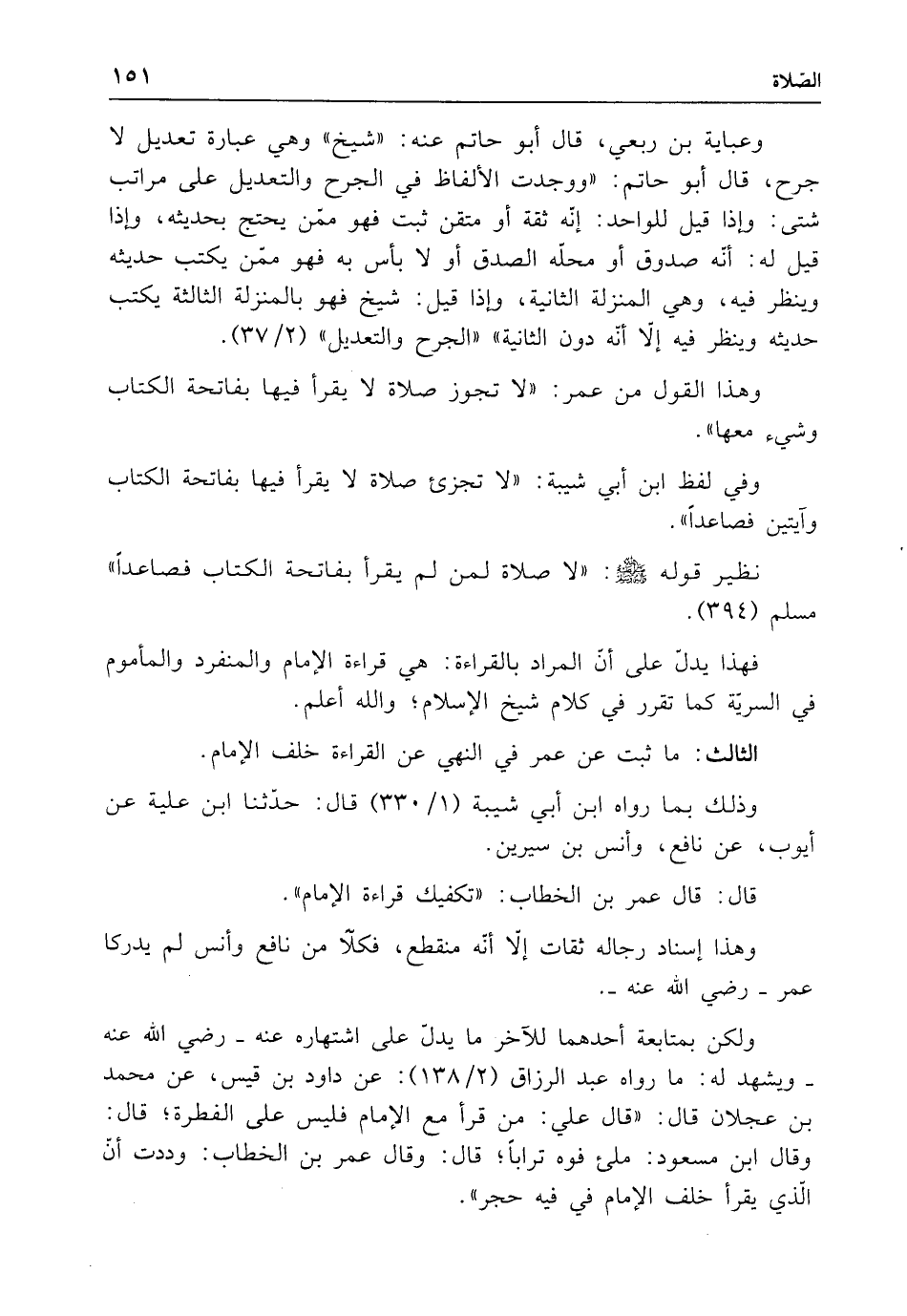 وهذا القول من عمر: "لا تجوز صلاة لا يقرأ فيها بفاتحة الكتاب وشيء معها".