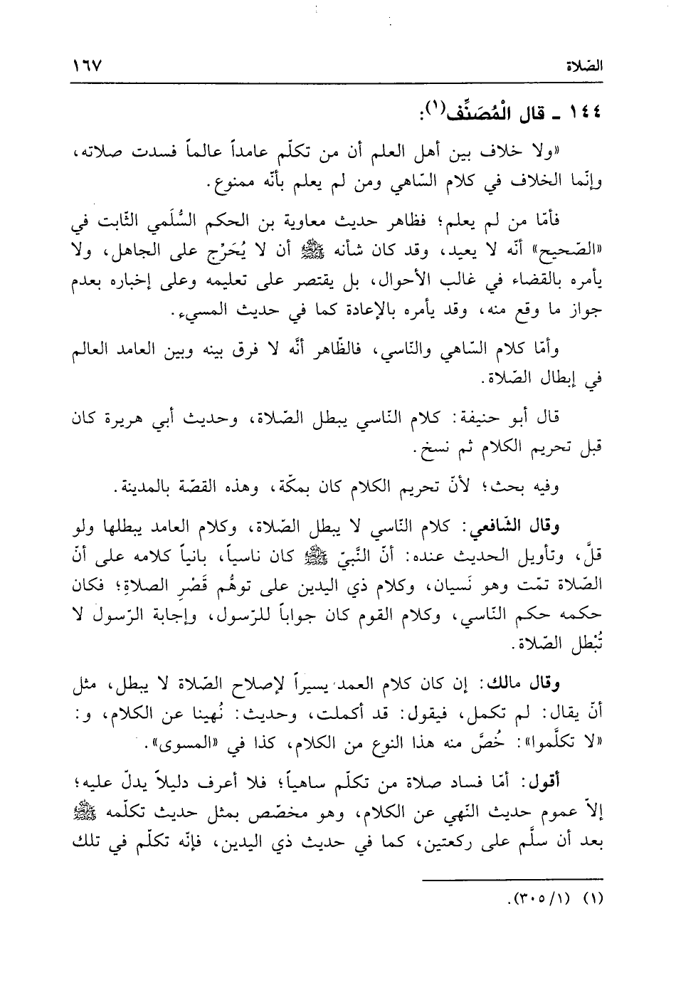 "ولا خلاف بين أهل العلم أن من تكلّم عامدًا عالمًا فسدت صلاته، وإنما الخلاف في كلام الساهي ومن لم يعلم بأنه ممنوع.