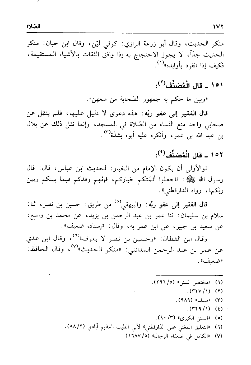 قال الفقير إلى عفو ربه: والبيهقي (¬5) من طريق: حسين بن نصر، ثنا: سلام بن سليمان: ثنا عمر بن عبد الرحمن بن يزيد، عن محمد بن واسع، عن سعيد بن جبير، عن ابن عمر به، وقال: "إسناده ضعيف".