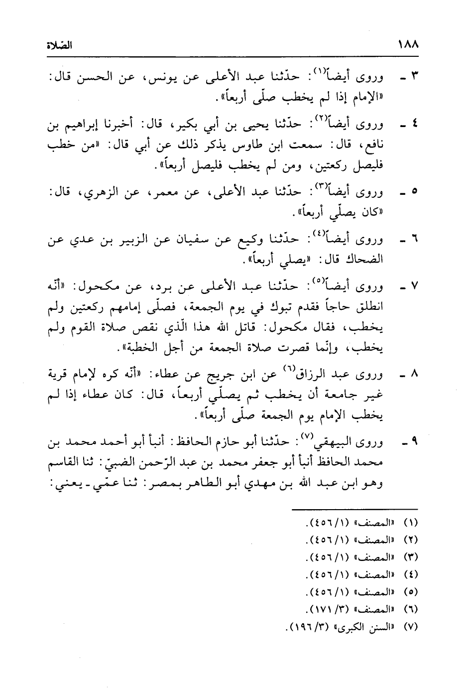 5 - وروى أيضًا (¬3): حدثنا عبد الأعلى، عن معمر، عن الزهري، قال: "كان يصلي أربعًا".