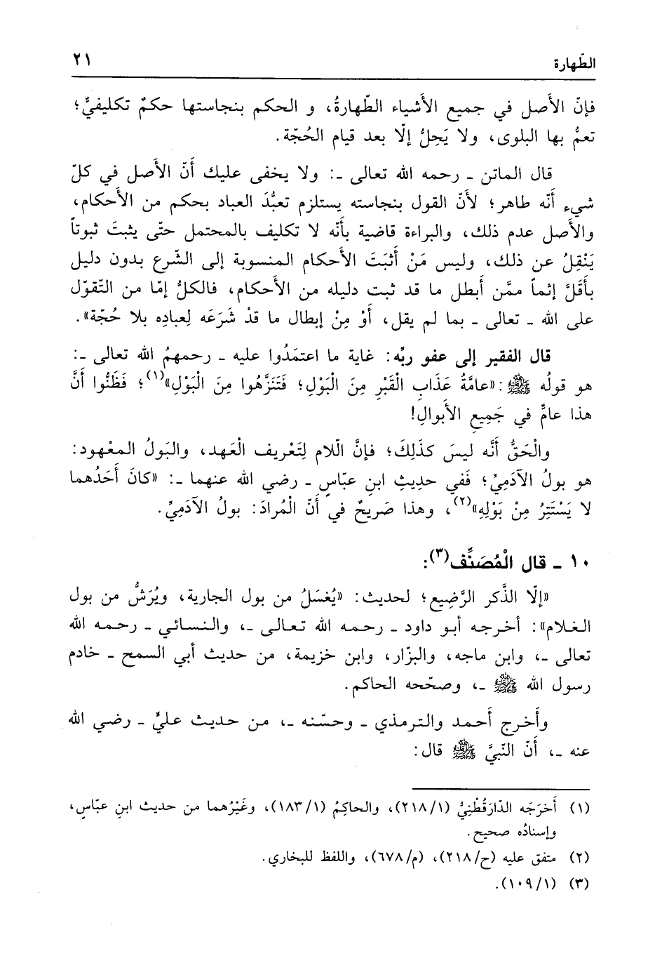 قال الفقير إلى عفو ربه: غاية ما اعتمَدُوا عليه -رحمهمُ الله تعالى-: هو قولُه - صلى الله عليه وسلم -: "عامَّةُ عَذاب الْقَبْرِ مِنَ البَوْلِ؛ فَتَنَزهُوا مِنَ الْبَوْلِ" (¬1)؛ فَظَنُّوا أَن هذا عامٌّ في جَمِيعِ الأَبوالَ!