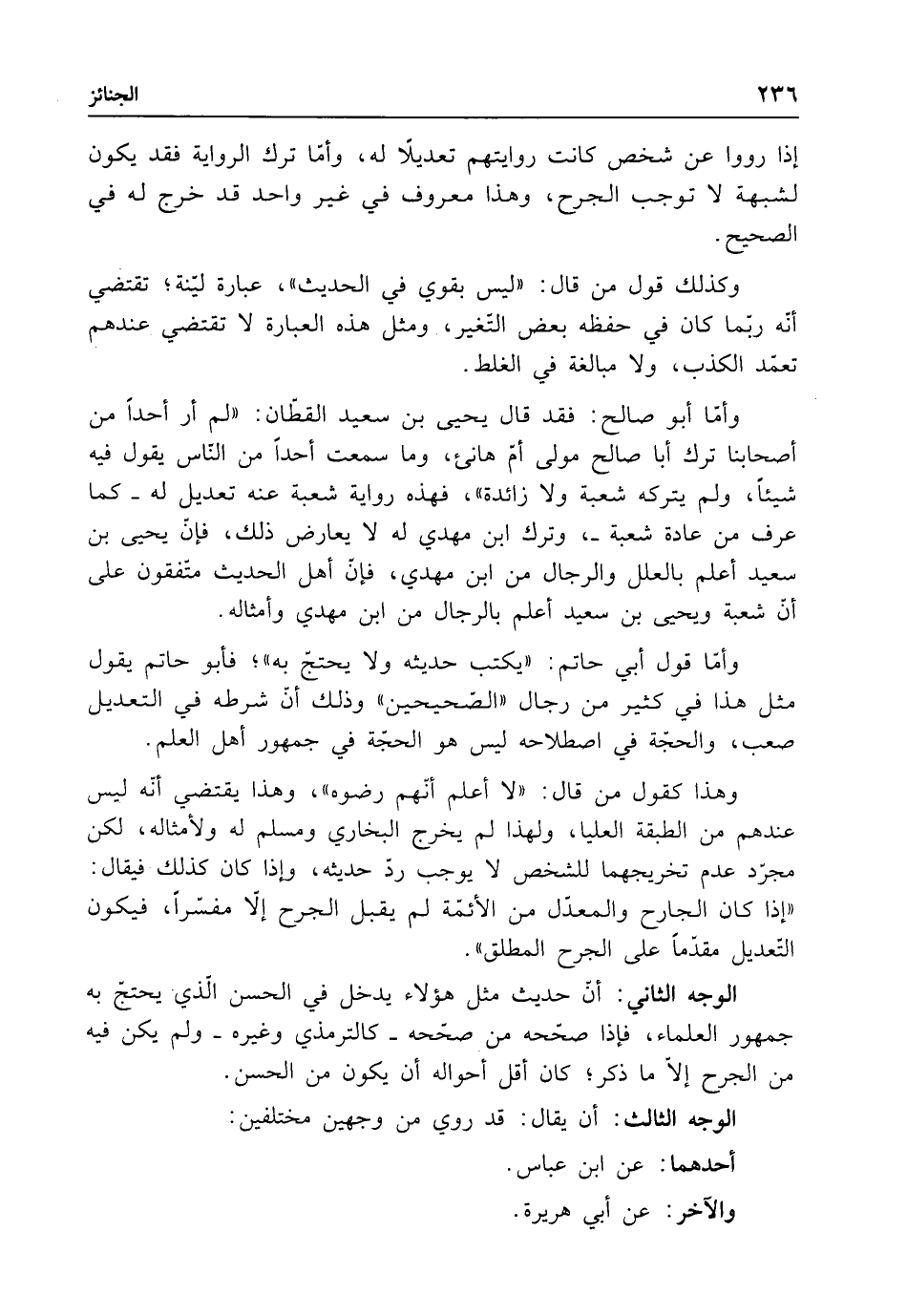 أما أبو صالح: فقد قال يحيى بن سعيد القطان: "لم أر أحدًا من أصحابنا ترك أبا صالح مولى أم هانئ، وما سمعت أحدًا من الناس يقول فيه شيئًا، ولم يتركه شعبة ولا زائدة"، فهذه رواية شعبة عنه تعديل له -كما عرف من عادة شعبة-، وترك ابن مهدي له لا يعارض ذلك، فإن يحيى بن سعيد أعلم بالعلل والرجال من ابن مهدي، فإن أهل الحديث متفقون على أن شعبة ويحيى بن سعيد أعلم بالرجال من ابن مهدي وأمثاله.