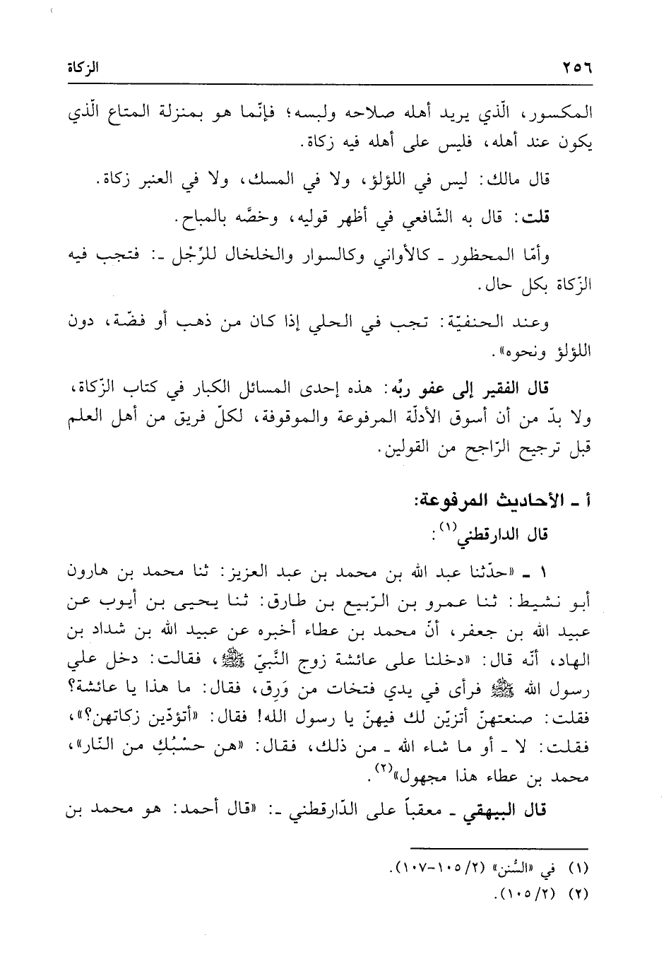 قال الفقير إلى عفو ربه: هذه إحدى المسائل الكبار في كتاب الزكاة، ولا بد من أن أسوق الأدلة المرفوعة والموقوفة، لكل فريق من أهل العلم قبل ترجيح الراجح من القولين.