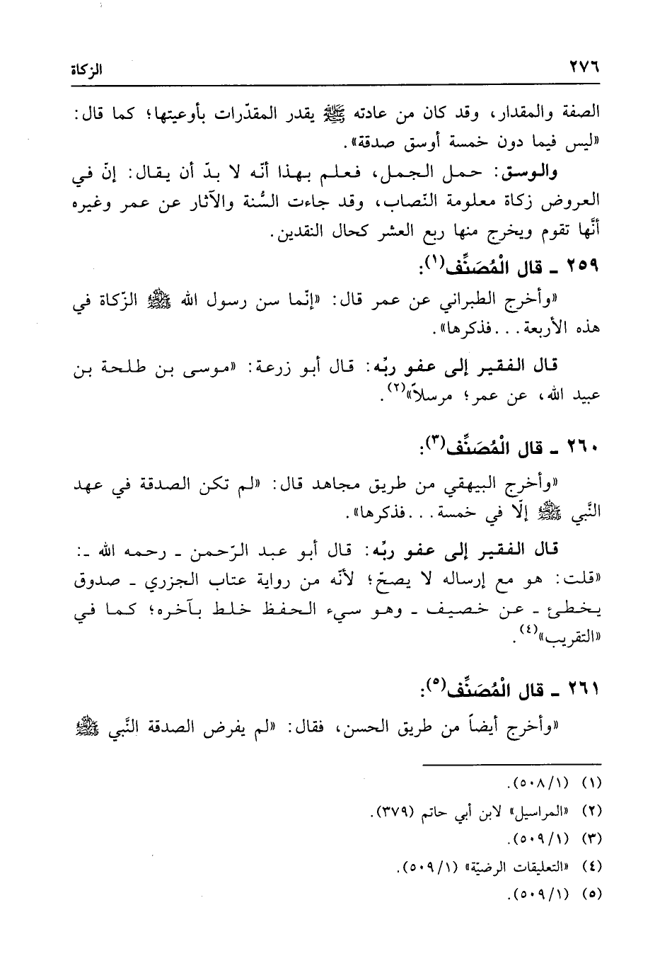 "وأخرج أيضًا من طريق الحسن، فقال: "لم يفرض الصدقة النبي - صلى الله عليه وسلم -