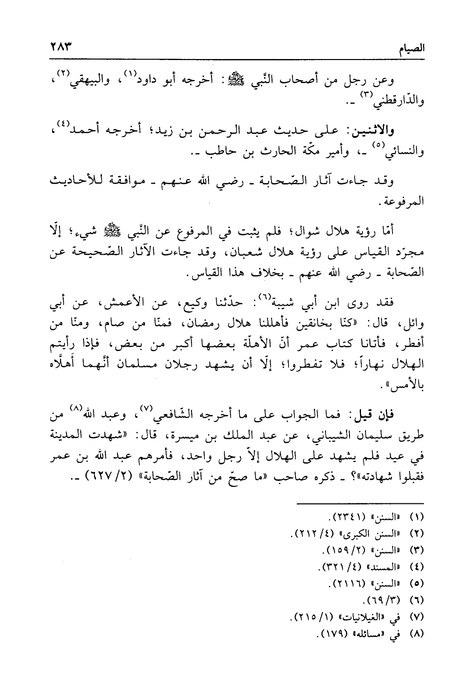 أمّا رؤية هلال شوال؛ فلم يثبت في المرفوع عن النبي - صلى الله عليه وسلم - شيء؛ إلا مجرّد القياس على رؤية هلال شعبان، وقد جاءت الآثار الصّحيحة عن الصَّحابة -رضي الله عنهم- بخلاف هذا القياس.