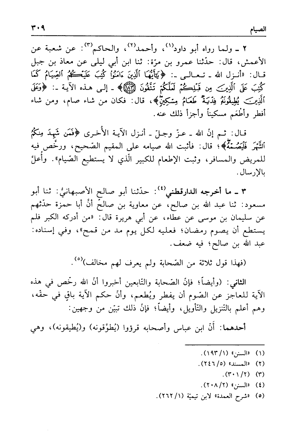 (¬5) "شرح العمدة" لابن تيمية (1/ 262).