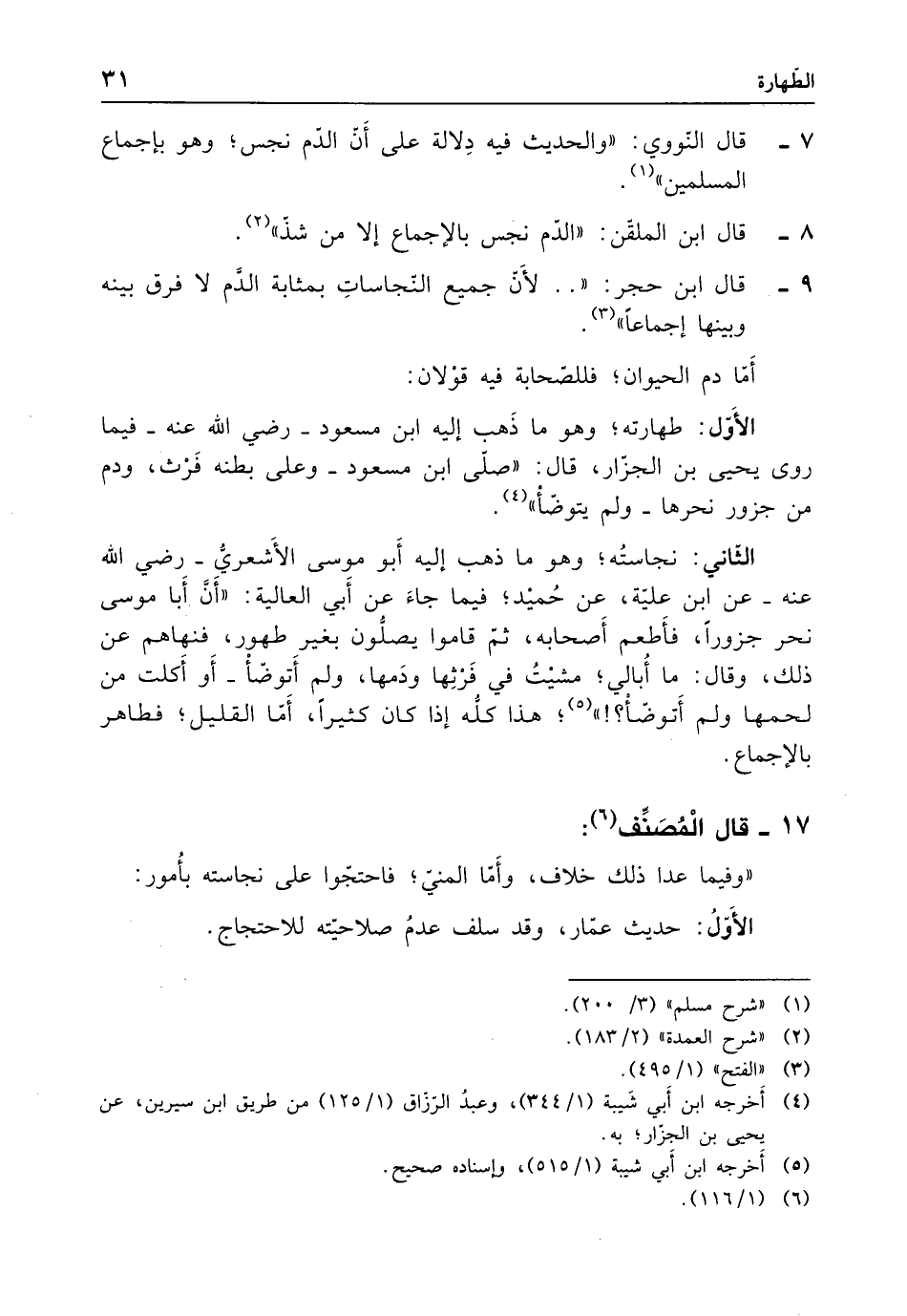 9 - قال ابن حجر: " .. لأَن جميع النّجاساتِ بمثابة الدَّم لا فرق بينه وبينها إجماعًا" (¬3).