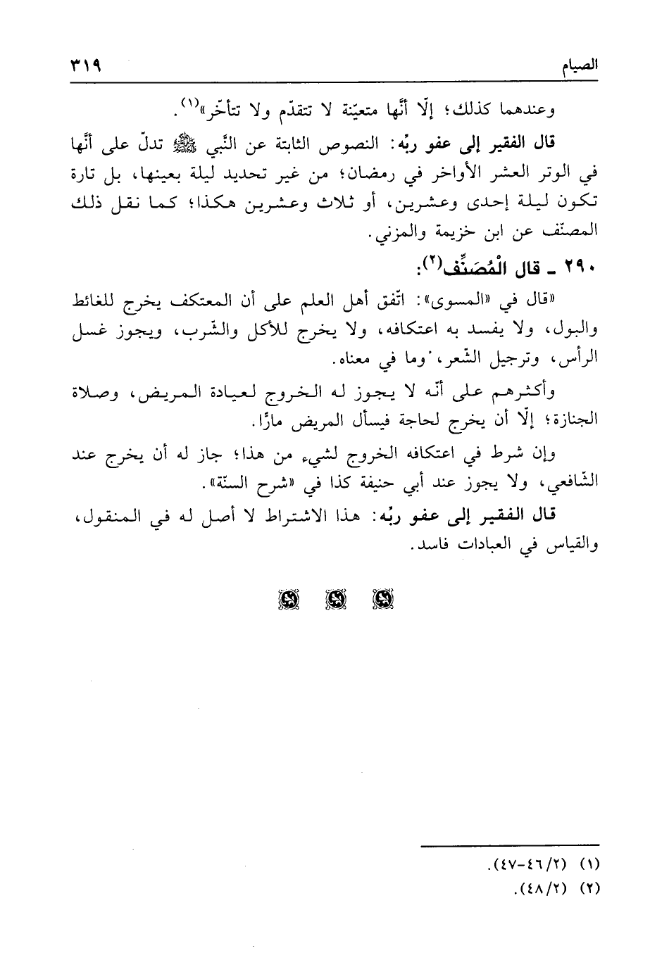 قال الفقير إلى عفو ربِّه: النصوص الثابتة عن النَّبيّ - صلى الله عليه وسلم - تدلّ على أنّها في الوتر العشر الأواخر في رمضان؛ من غير تحديد ليلة بعينها، بل تارة تكون ليلة إحدى وعشرين، أو ثلاث وعشرين هكذا؛ كما نقل ذلك المصنّف عن ابن خزيمة والمزني.
