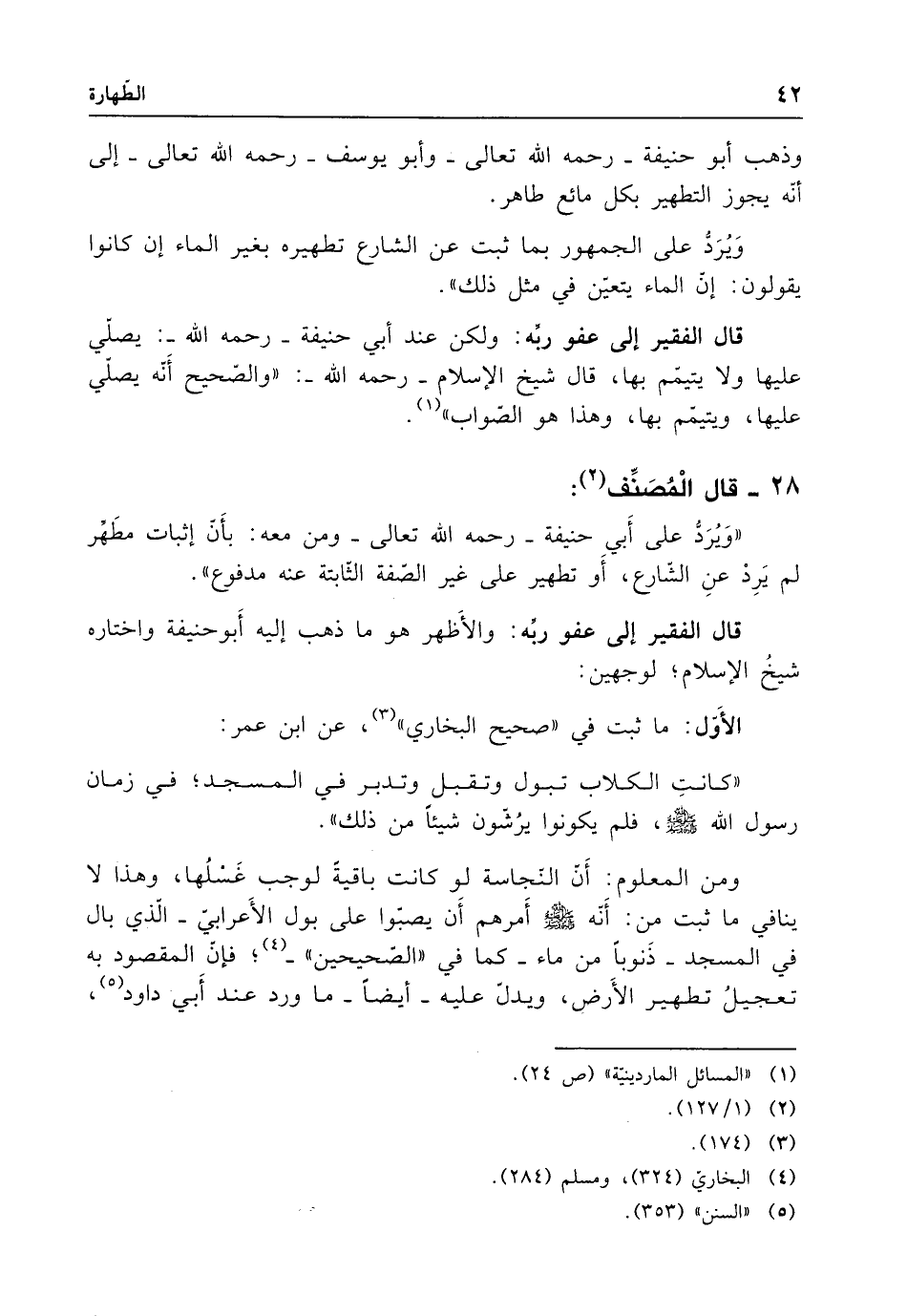 قال الفقير إلى عفو ربه: والأَظهر هو ما ذهب إليه أَبو حنيفة واختاره شيخُ الإِسلام؛ لوجهين: