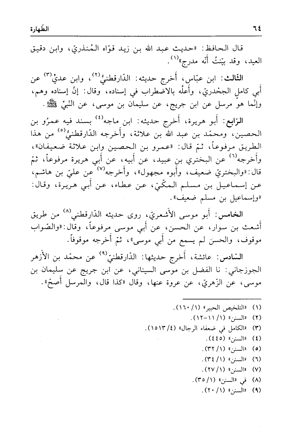 (¬1) "التلخيص الحبير" (1/ 160).