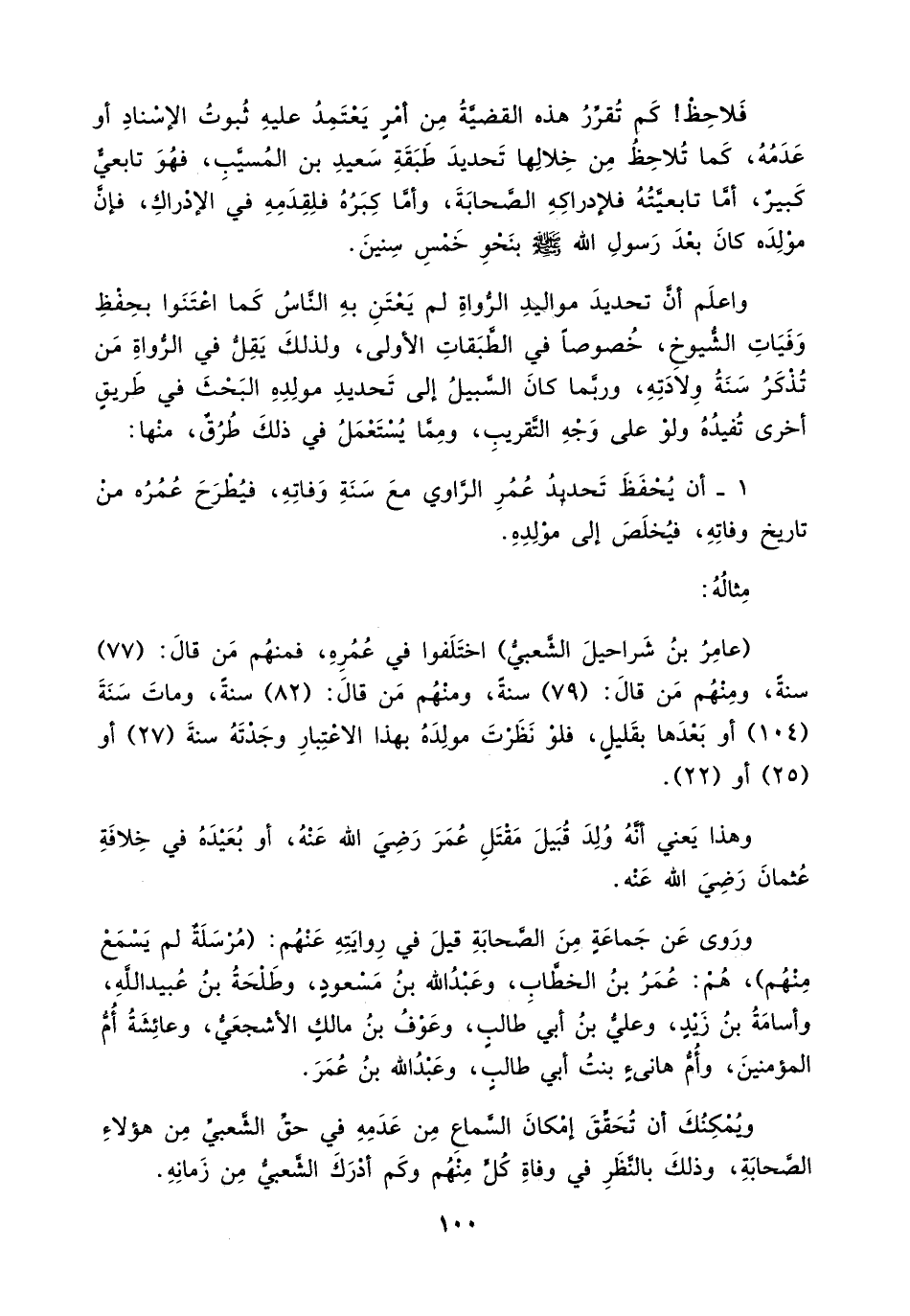 (عامر بن شراحيل الشعبي) اختلفوا في عمره، فمنهم من قال: (77) سنة، ومنهم من قال: (79) سنة، ومنهم من قال: (82) سنة، ومات سنة (104) أو بعدها بقليل، فلو نظرت مولده بهذا الاعتبار وجدته سنة (27) أو (52) أو (22).