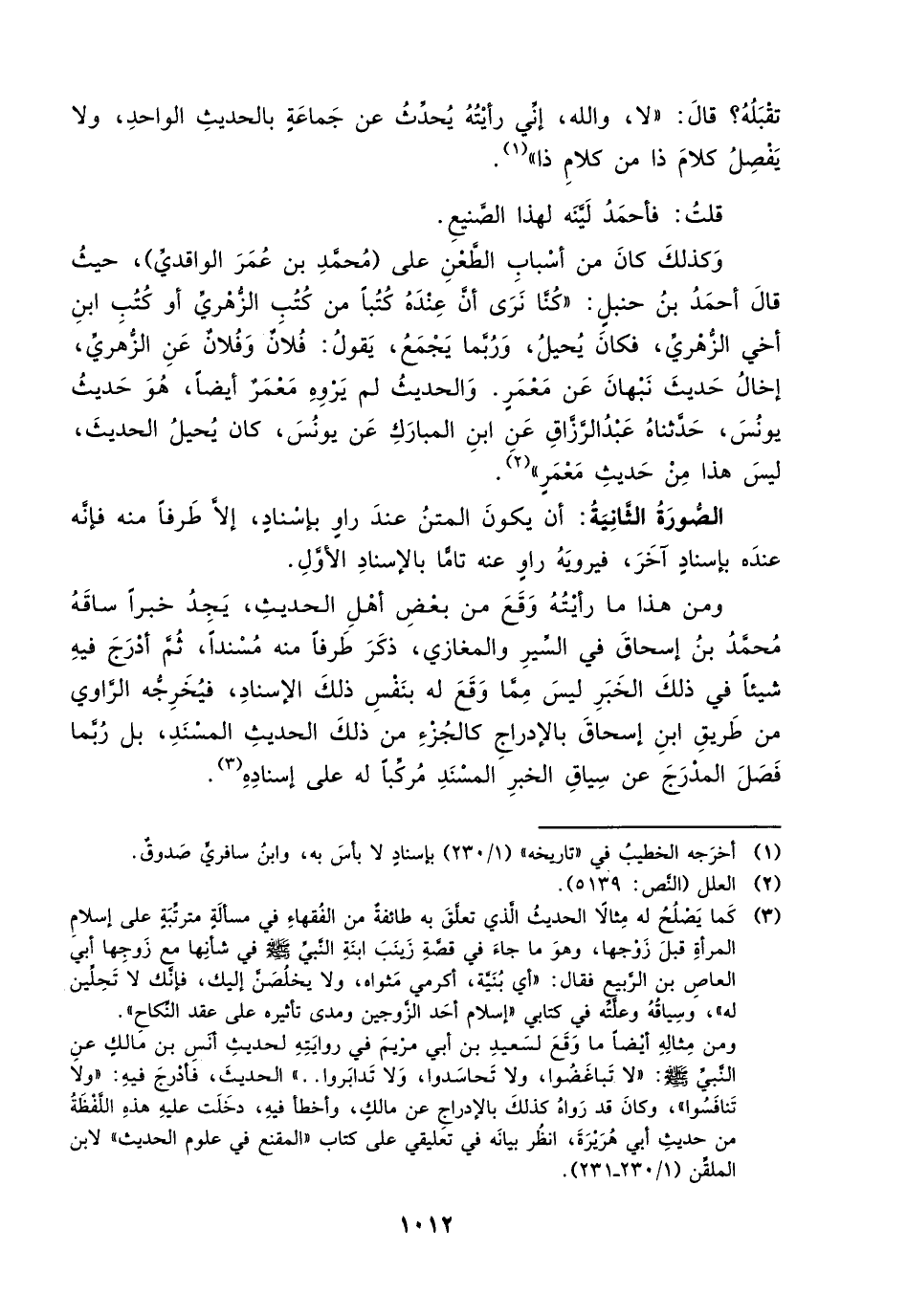 ومن هذا ما رأيته وقع من بعض أهل الحديث، يجد خبراً ساقه محمد بن إسحاق في السير والمغازي، ذكر طرفاً منه مسنداً، ثم أدرج فيه شيئاً في ذلك الخبر ليس مما وقع له بنفس ذلك الإسناد، فيخرجه الراوي من طريق ابن إسحاق بالإدراج كالجزء من ذلك الحديث المسند، بل ربما فصل المدرج عن سياق الخبر المسند مركباً له على إسناده (¬3).