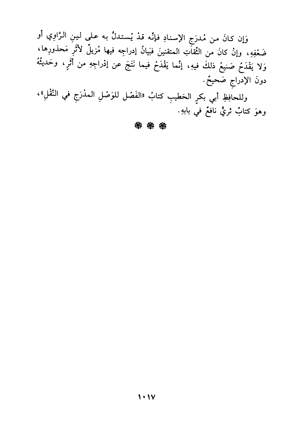 وللحافظ أبي بكر الخطيب كتاب " الفصل للوصل المدرج في النقل "، وهو كتاب ثري نافع في بابه.