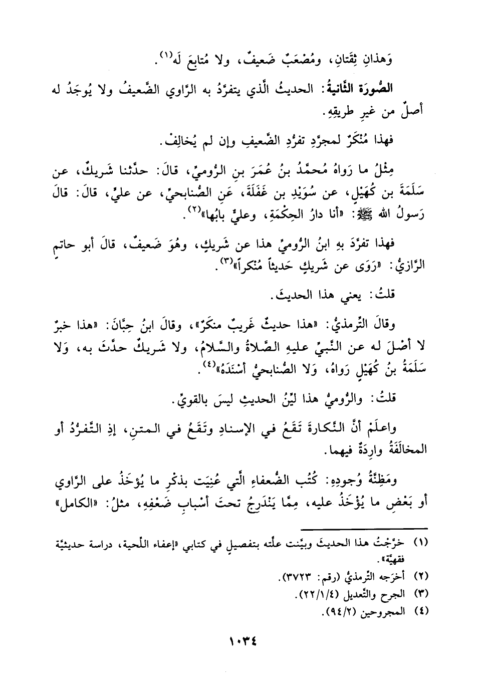 الصورة الثانية: الحديث الذي يتفرد به الراوي الضعيف ولا يوجد له أصل من غير طريقه.