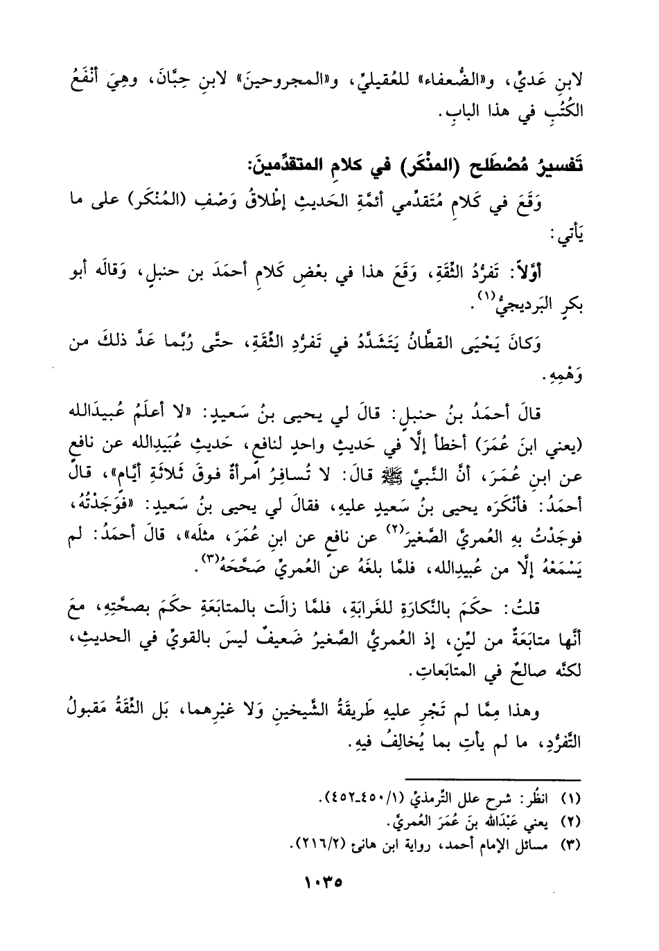 وقع في كلام متقدمي أئمة الحديث إطلاق وصف (المنكر) على ما يأتي: