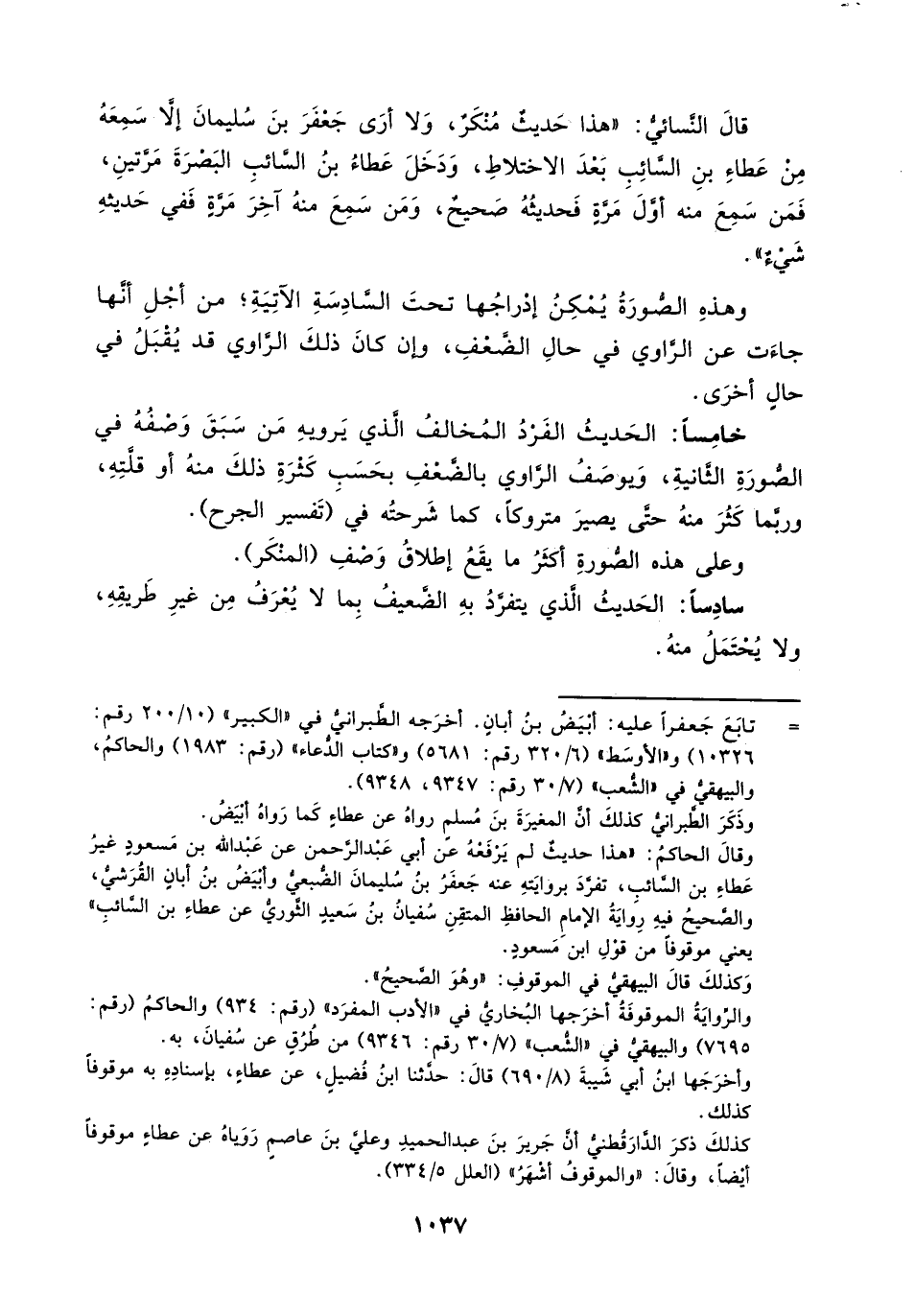 خامساً: الحديث الفرد المخالف الذي يرويه من سبق وصفه في الصورة الثانية، ويوصف الراوي بالضعف بحسب كثرة ذلك منه أو قلته، وربما كثر منه حتى يصير متروكاً، كما شرحته في (تفسير الجرح).