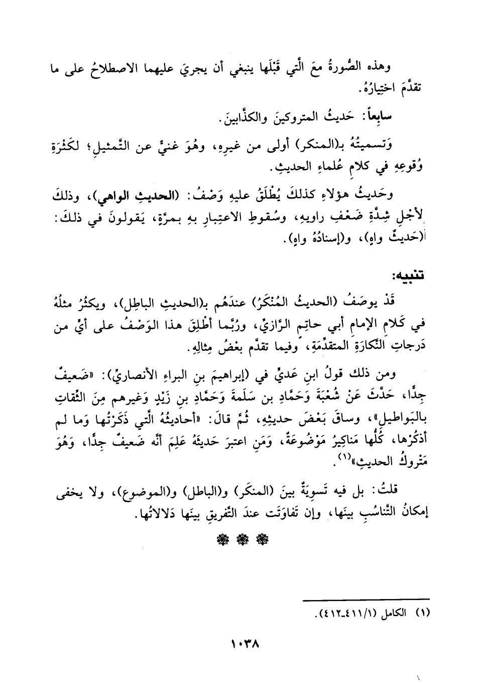 قلت: بل فيه تسوية بين (المنكر) و (الباطل) و (الموضوع)، ولا يخفى إمكان التناسب بينها، وإن تفاوتت عند التفريق بينها دلالاتها.