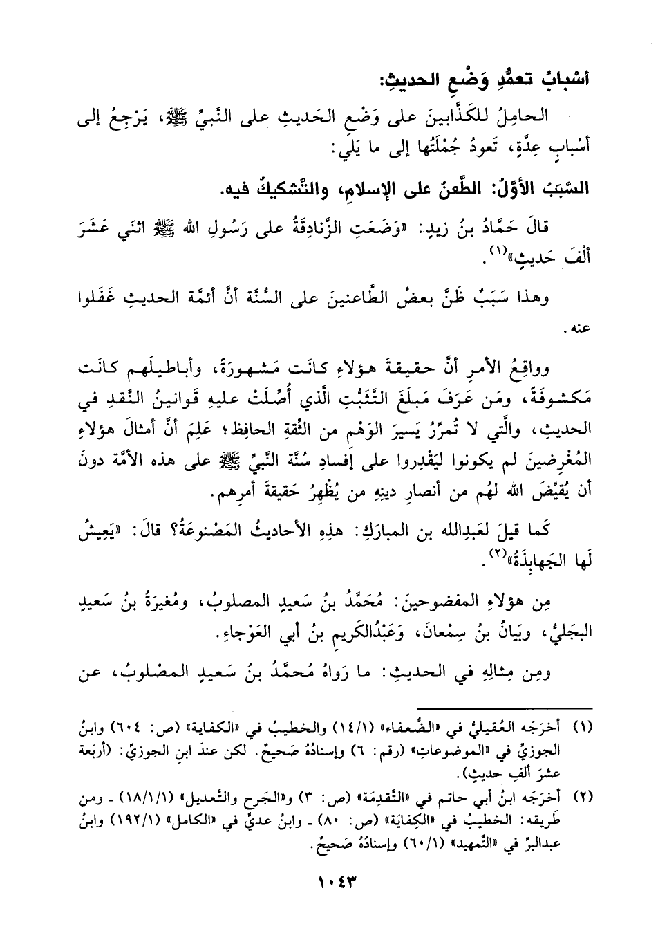 (¬1) أخرجه العقيلي في " الضعفاء " (1/ 14) والخطيب في " الكفاية " (ص: 604) وابن الجوزي في " الموضوعات " (رقم: 6) وإسناده صحيح لكن عند ابن الجوزي: (أربعة عشر ألف حديث).