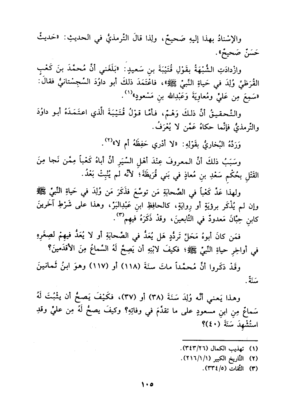 وازدادت الشبهة بقول قتيبة بن سعيد: " بلغني أن محمد بن كعب القرظي ولد في حياة النبي صلى الله عليه وسلم "، فاعتمد ذلك أبو داود السجستاني فقال: " سمع من علي ومعاوية وعبد الله بن مسعود " (¬1).