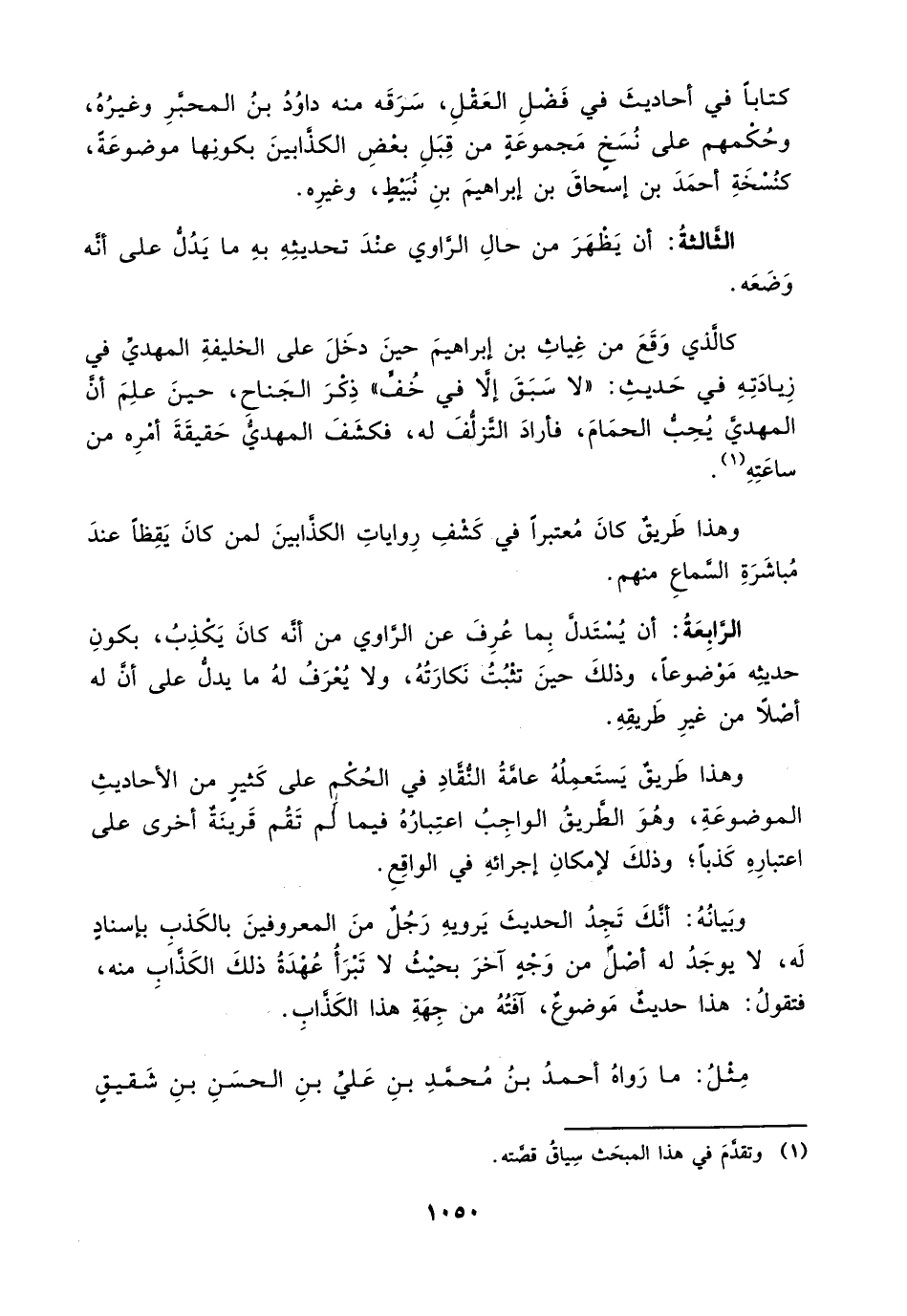 وهذا طريق يستعمله عامة النقاد في الحكم على كثير من الأحاديث الموضوعة، وهو الطريق الواجب اعتباره فيما لم تقم قرينة أخرى على اعتباره كذباً؛ وذلك لإمكان إجرائه في الواقع.