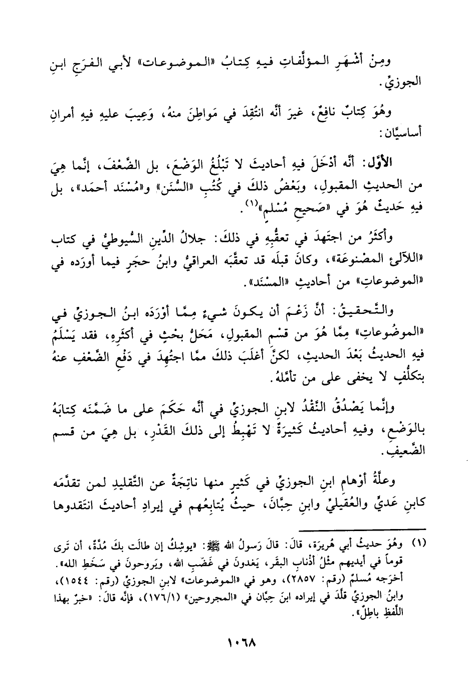 وإنما يصدق النقد لابن الجوزي في أنه حكم على ما ضمنه كتابه بالوضع، وفيه أحاديث كثيرة لا تهبط إلى ذلك القدر، بل هي من قسم الضعيف.