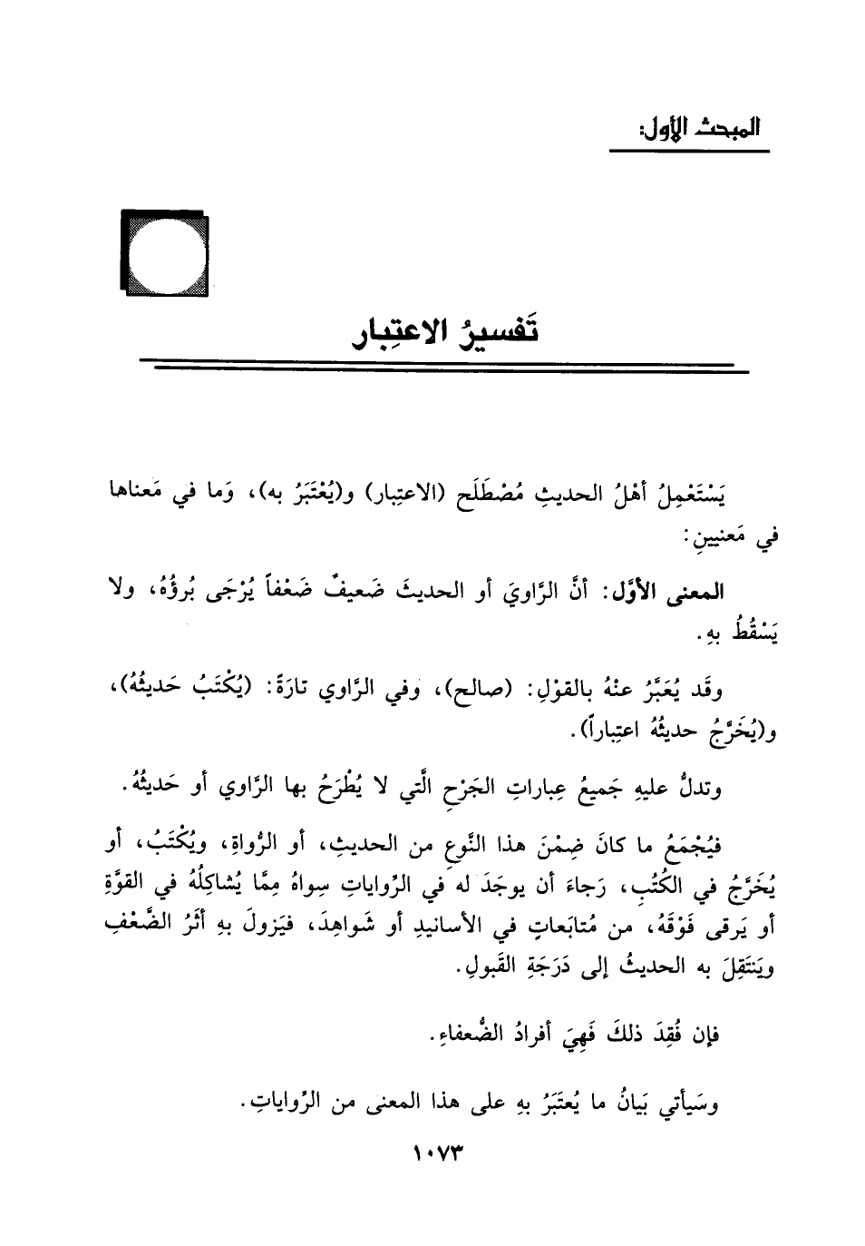 فيجمع ما كان ضمن هذا النوع من الحديث، أو الرواة، ويكتب، أو يخرج في الكتب، رجاء أن يوجد له في الروايات سواه مما يشاكله في القوة أو يرقى فوقه، من متابعات في الأسانيد أو شواهد، فيزول به أثر الضعف وينتقل به الحديث إلى درجة القبول.