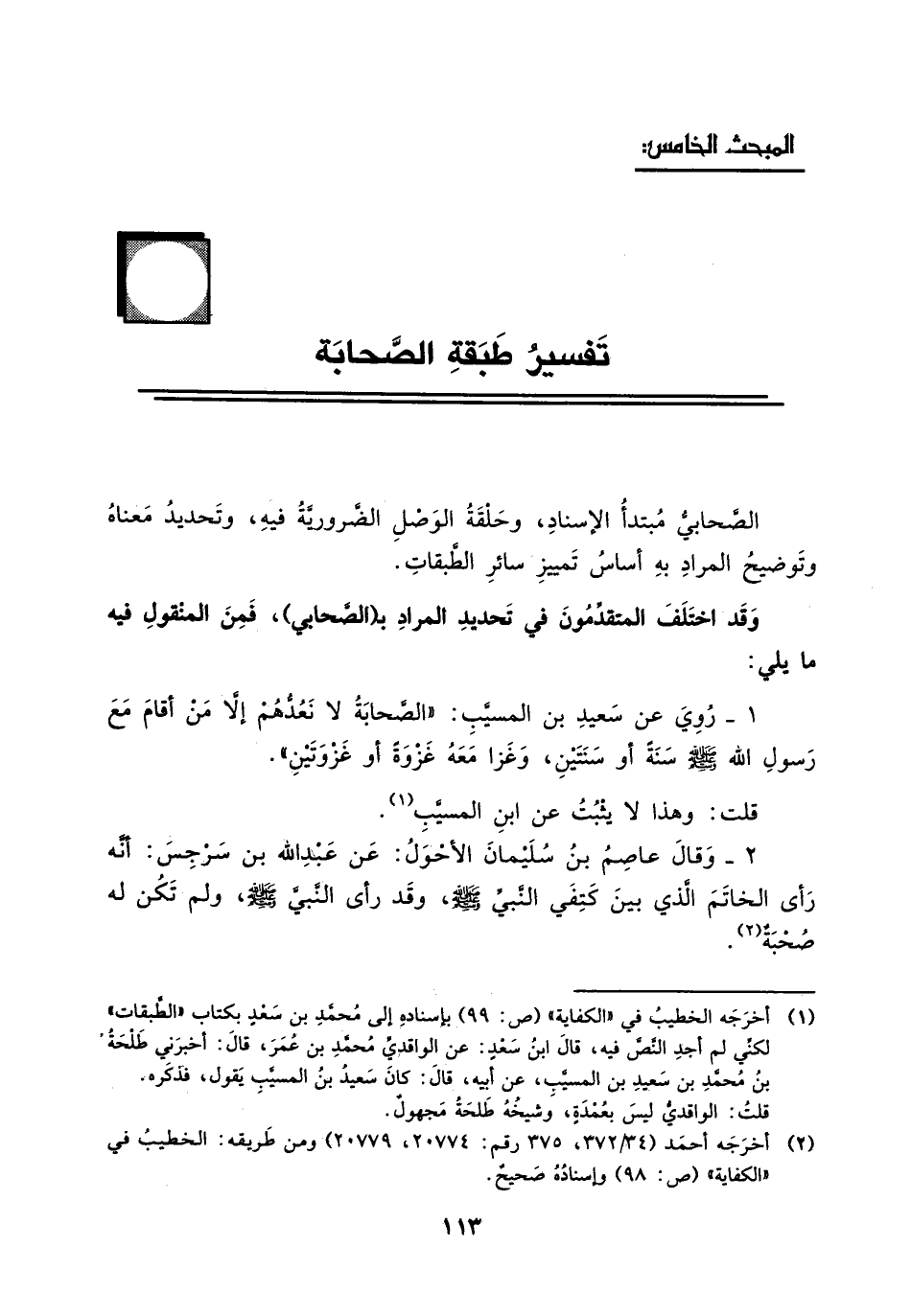 الصحابي مبتدأ الإسناد، وحلقة الوصول الضرورية فيه، وتحديد معناه وتوضيح المراد به أساس تمييز سائر الطبقات.