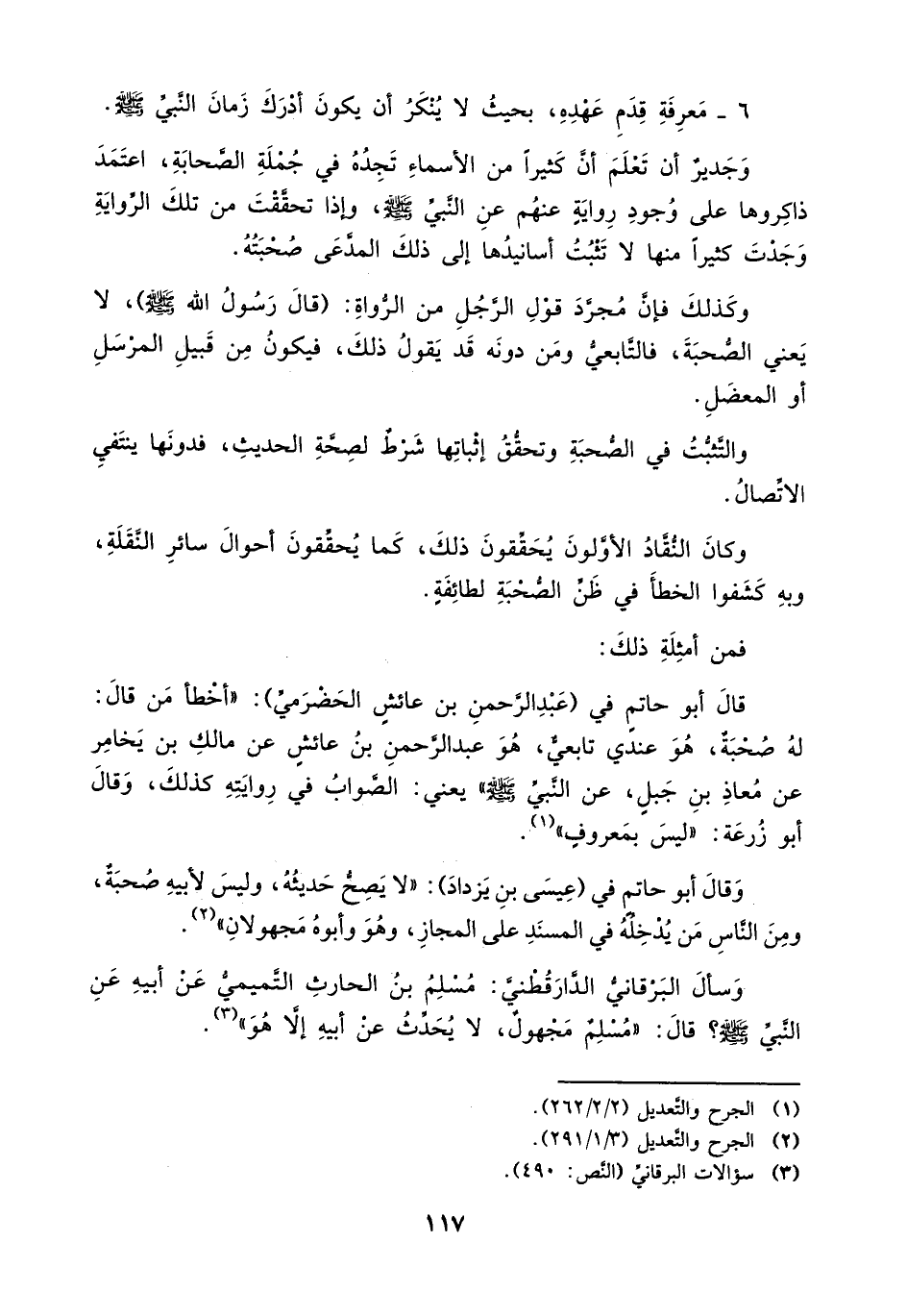 وكان النقاد الأولون يحققون ذلك، كما يحققون أحوال سائر النقلة، وبه كشفوا الخطأ في ظن الصحبة لطائفة.
