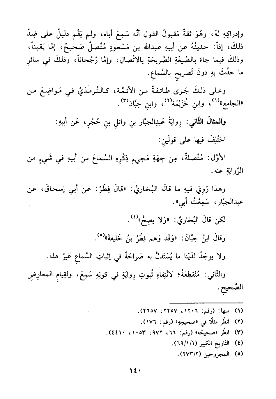 والمثال الثاني: رواية عبدِ الجبار بن وائل بن حُجر، عن أبيه: