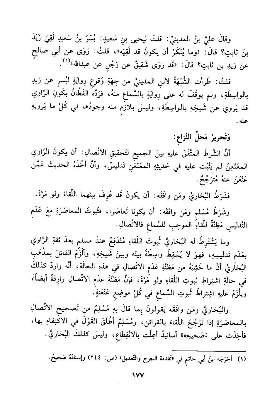 قلت: طرأت الشبهة لابن المديني من جهة وقوع رواية لبسر عن زيد بالواسطة، ولم يوقف له على رواية بالسماع منه، فرده القطان بكون الراوي قد يروي عن شيخه بالواسطة، وليس بلازم منه وجودها في كل ما يرويه عنه.