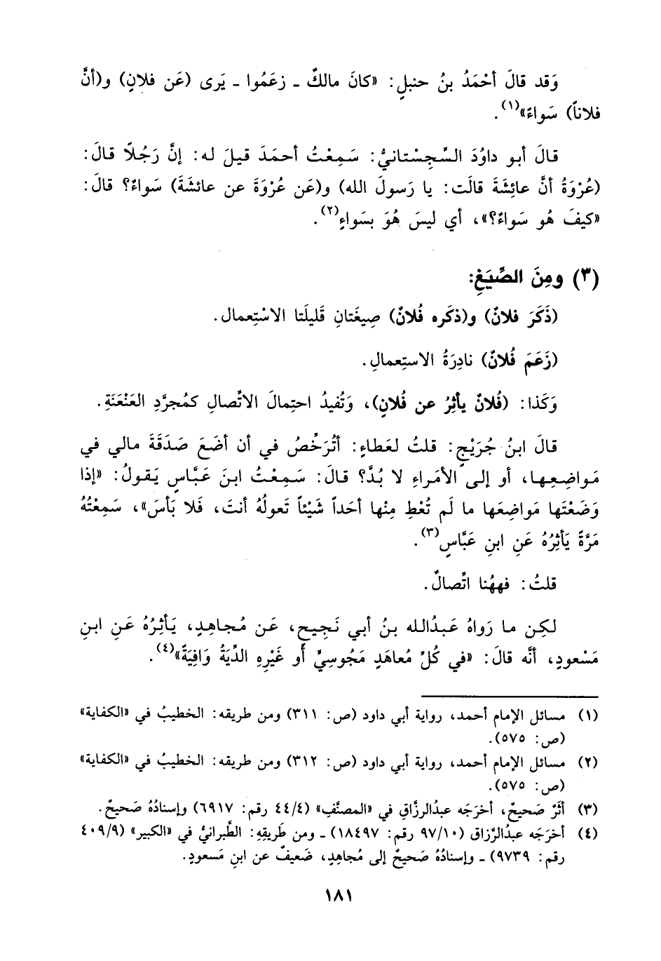 وكذا: (فلان يأثر عن فلان)، وتفيد احتمال الاتصال كمجرد العنعنة.