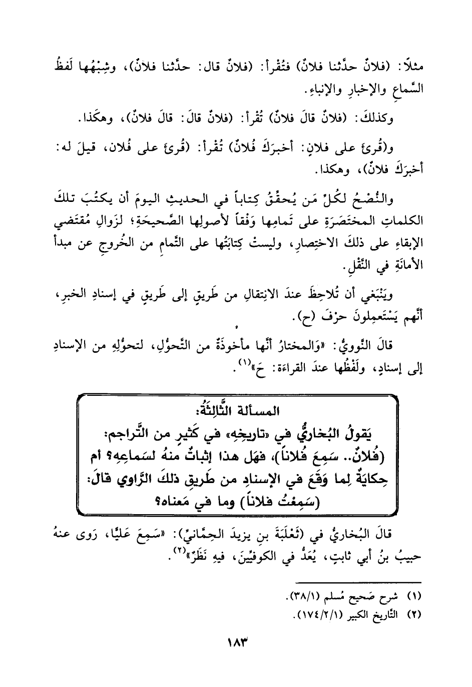 وينبغي أن تلاحظ عند الانتقال من طريق إلى طريق في إسناد الخبر، أنهم يستعملون حرف (ح).