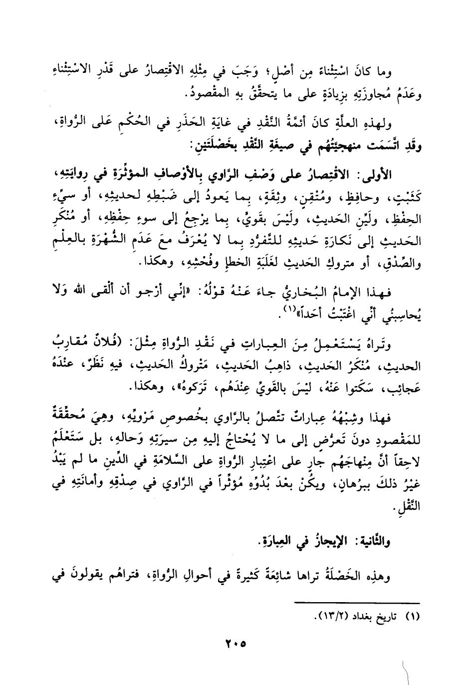 فهذا وشبهه عبارات تتصل بالراوي بخصوص مرويه، وهي محققة للمقصود دون تعرض إلى ما لا يحتاج إليه من سيرته وحاله، بل ستعلم لاحقاً أن منهاجهم جار على اعتبار الرواة على السلامة في الدين ما لم يبد غير ذلك ببرهان، ويكن بعد بدوه مؤثراً في الراوي في صدقه وأمانته في النقل.